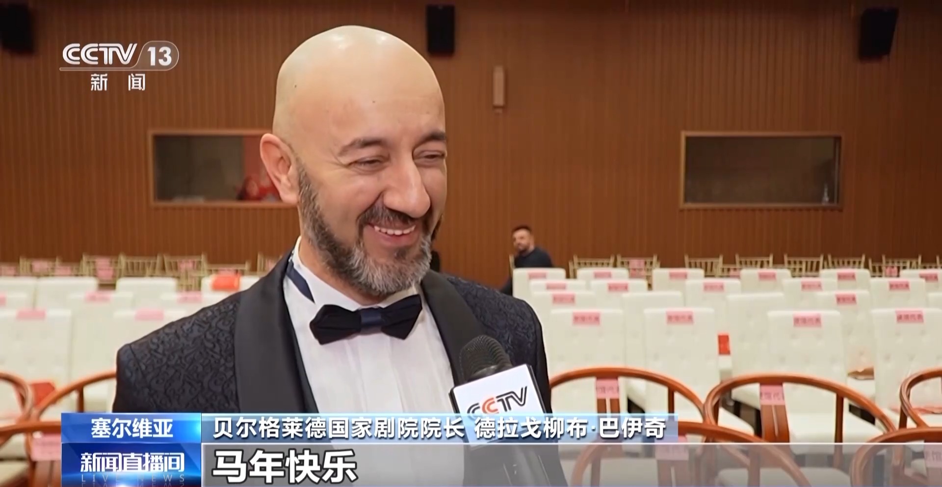贝尔格莱德国家剧院院长 德拉戈柳布·巴伊奇:马象征着力量、速度,和与成功有关的事物,所以我相信,我们与中国朋友的合作也会取得成功。马年快乐。