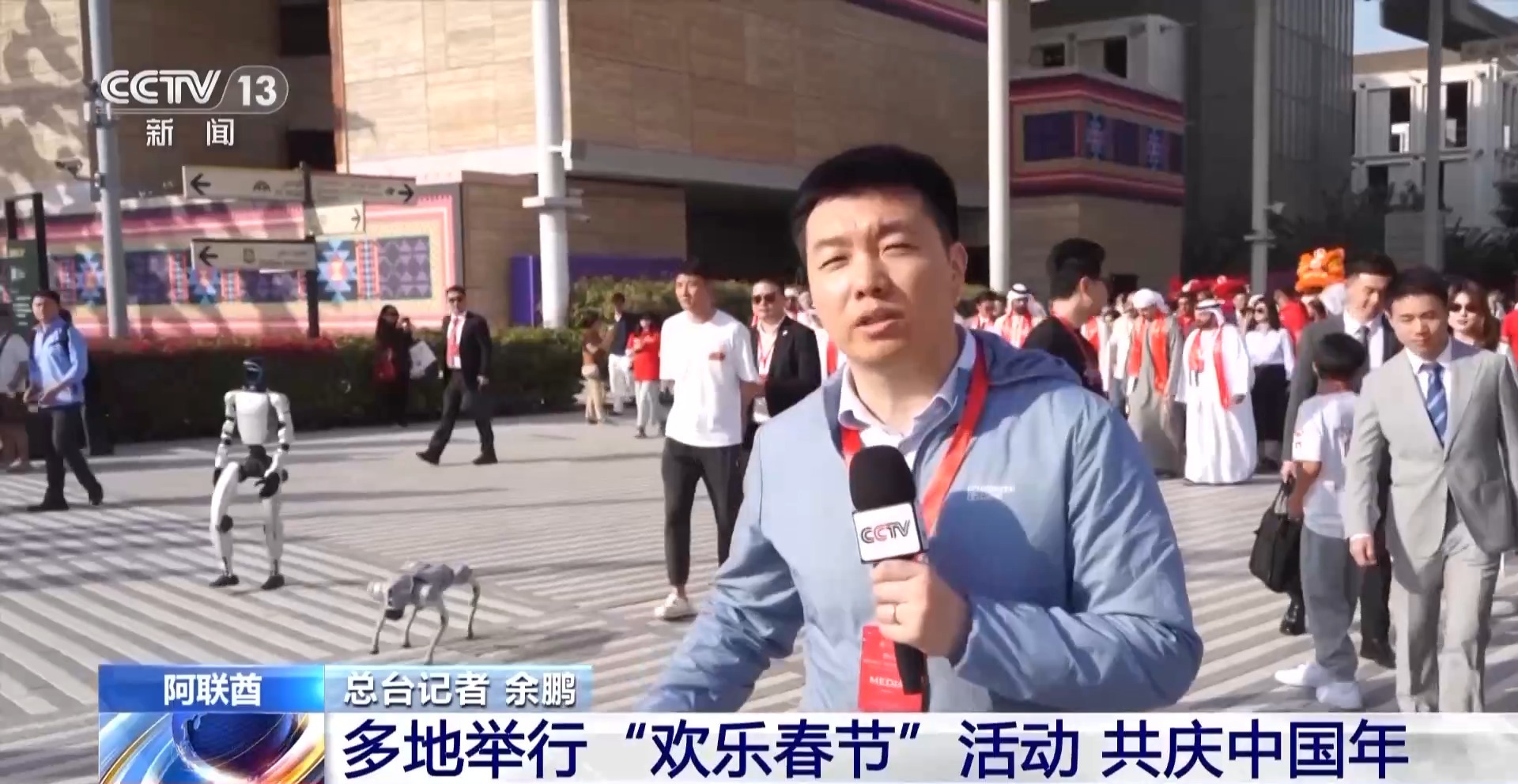 总台记者 余鹏:在我身后,由中国生产的机器人在打头阵,在它身后有40多个方阵、十多辆花车和超过3000人的巡游队伍,规模庞大的队伍为迪拜增添了浓厚的年味。