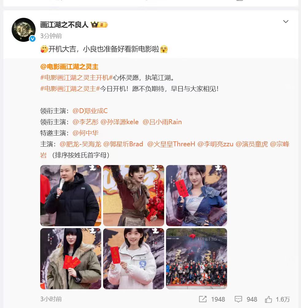 这属实是让人高兴,尤其是画江湖之灵主的真爱粉,更是高兴。画江湖之灵主真人电影,如今也终于是正式开机了。这画江湖之灵主电影,还搞了所谓的开机仪式,庆祝开机大吉,很多人也都到场了,尤其是这部真人电影的演员。到了现在,画江湖之灵主真人电影的主演也定了,主演也就是男主百里登风的扮演者便是大名鼎鼎的郑业成。